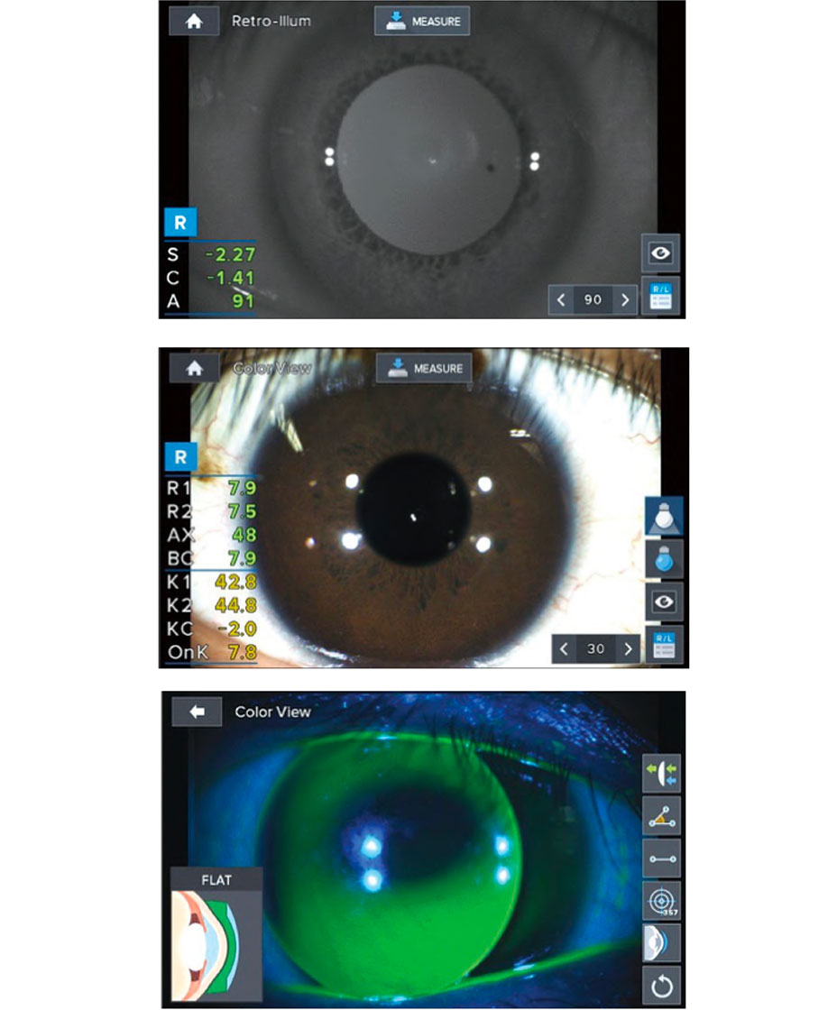 🌈 Modo Color View / Visualização em cor – permite avaliar condição ocular e encaixe de lente