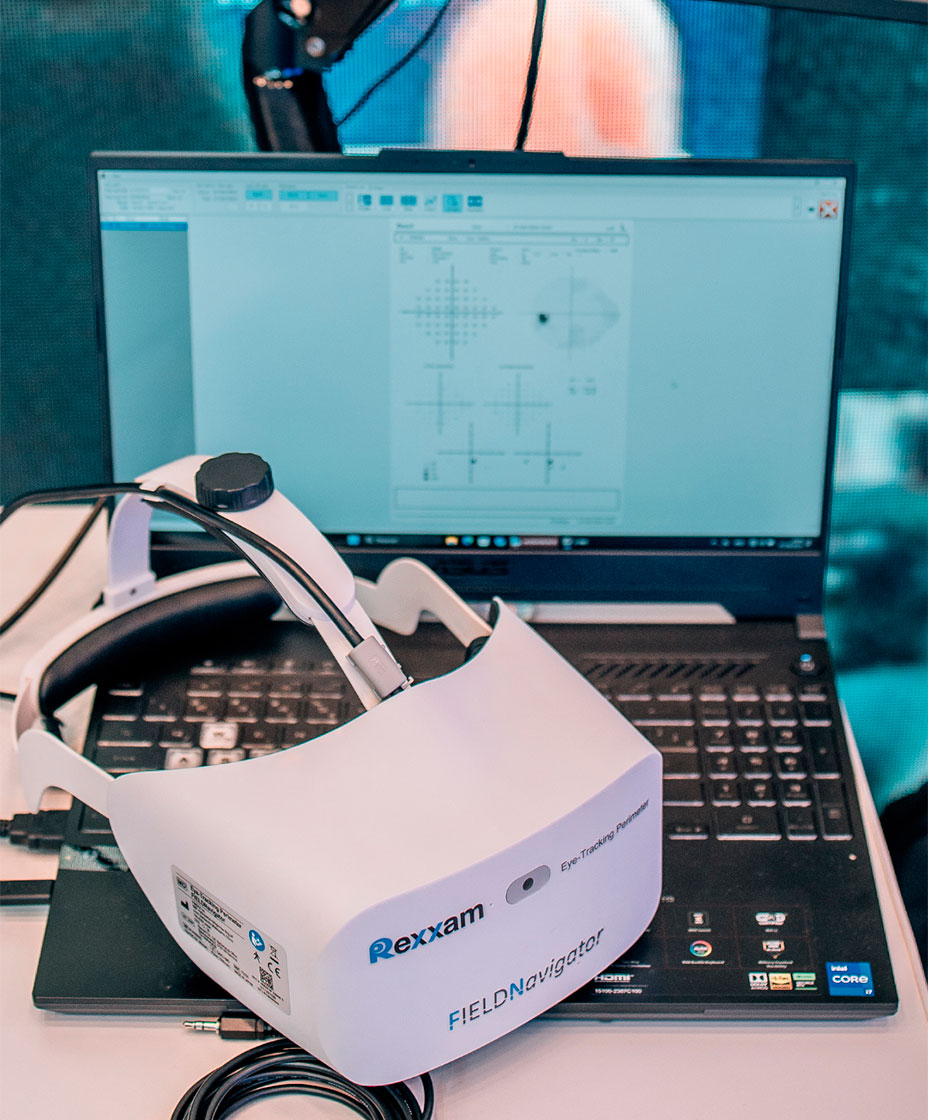 O FIELD NAVIGATOR traz uma forma inovadora e prática de realizar testes de campo visual, utilizando realidade virtual para oferecer conforto, precisão e relatórios detalhados de acompanhamento.