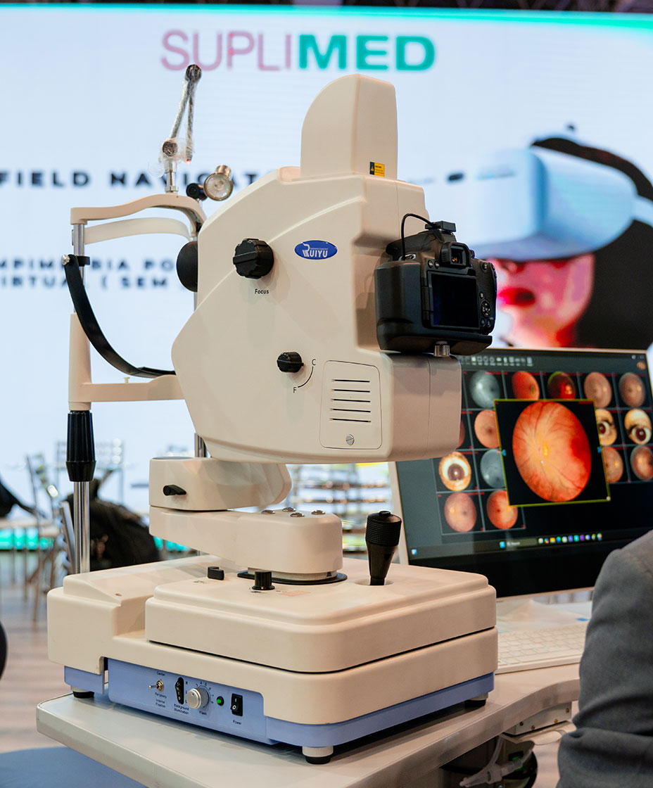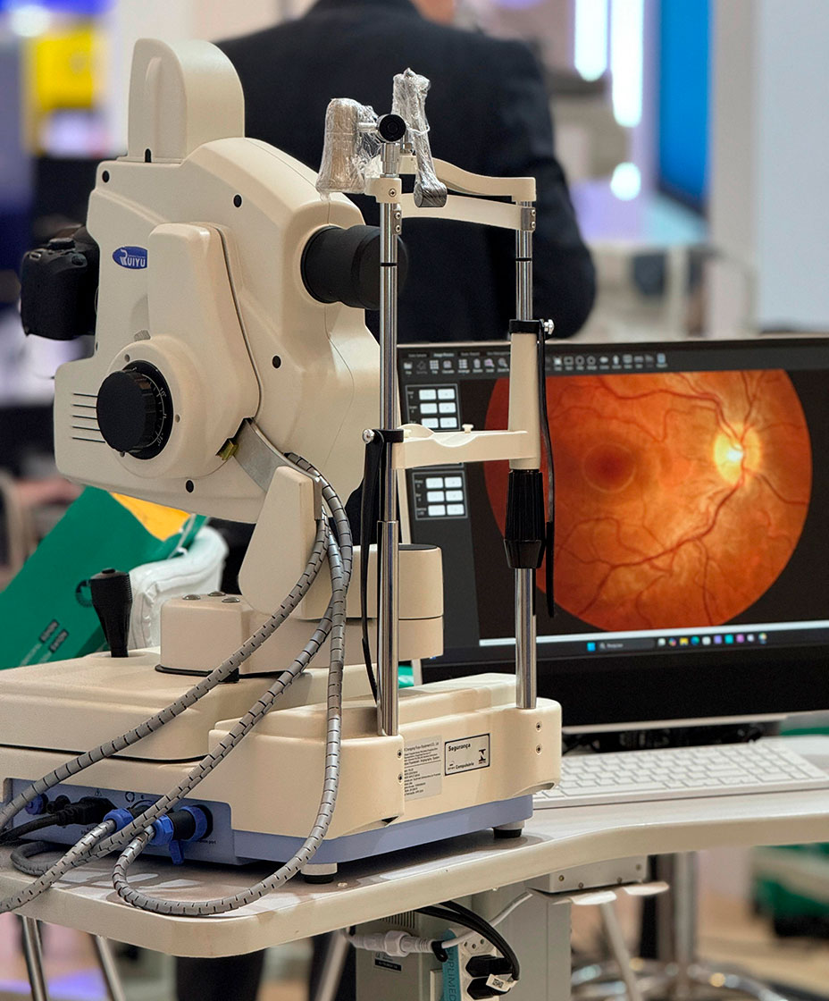 Uso em triagens oftalmológicas e check-ups.