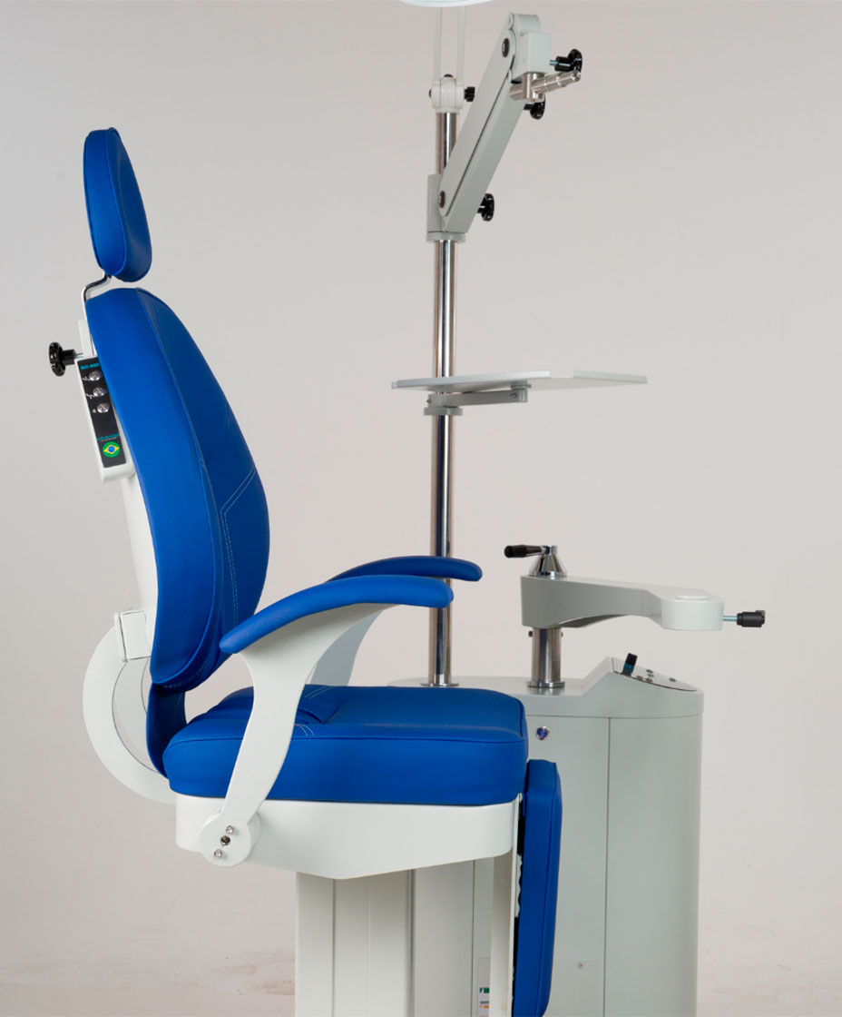 Seu encosto de cabeça articulável e suporte de monitor ajustável garantem posicionamento ideal para os mais variados procedimentos oftalmológicos.