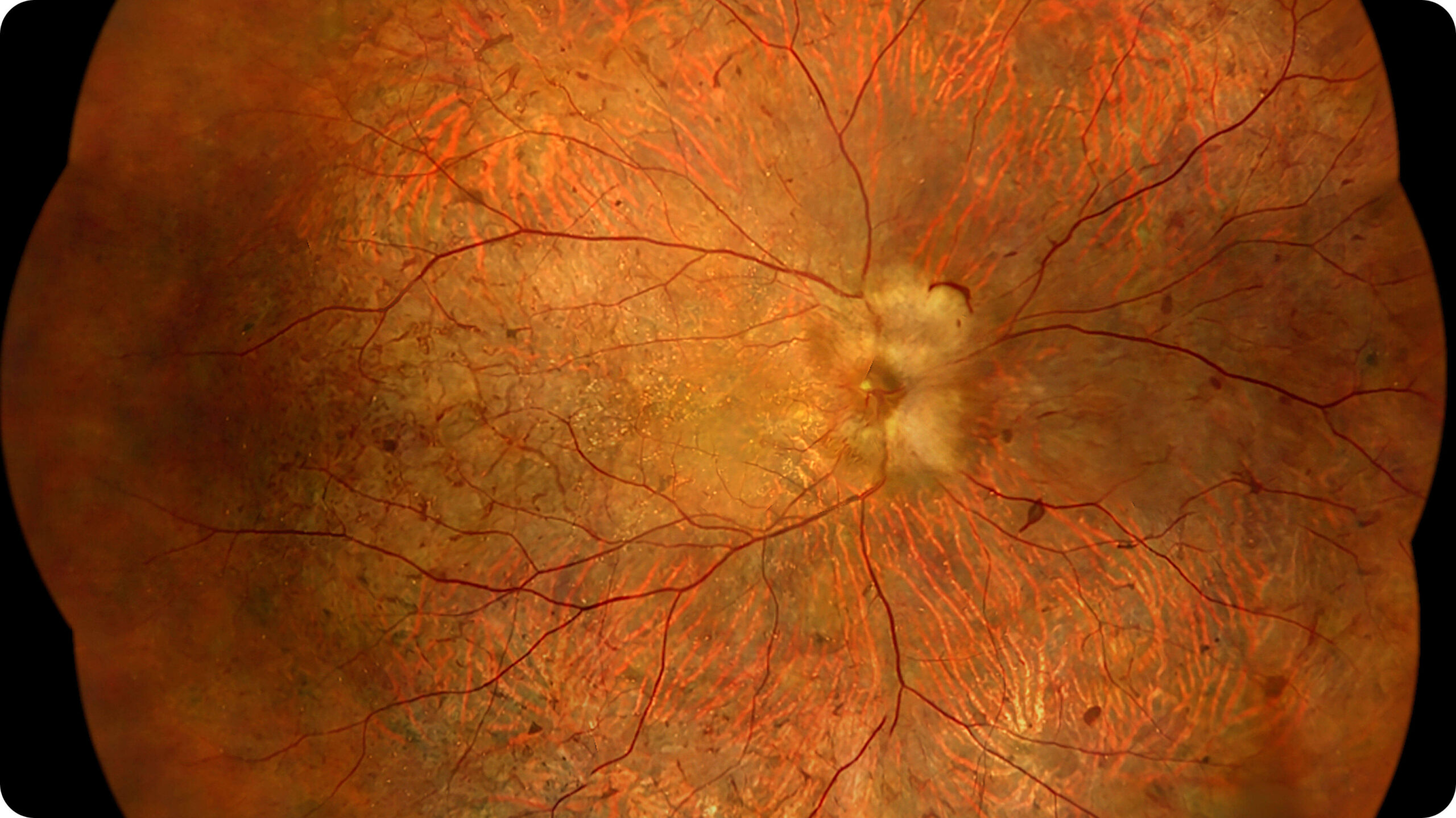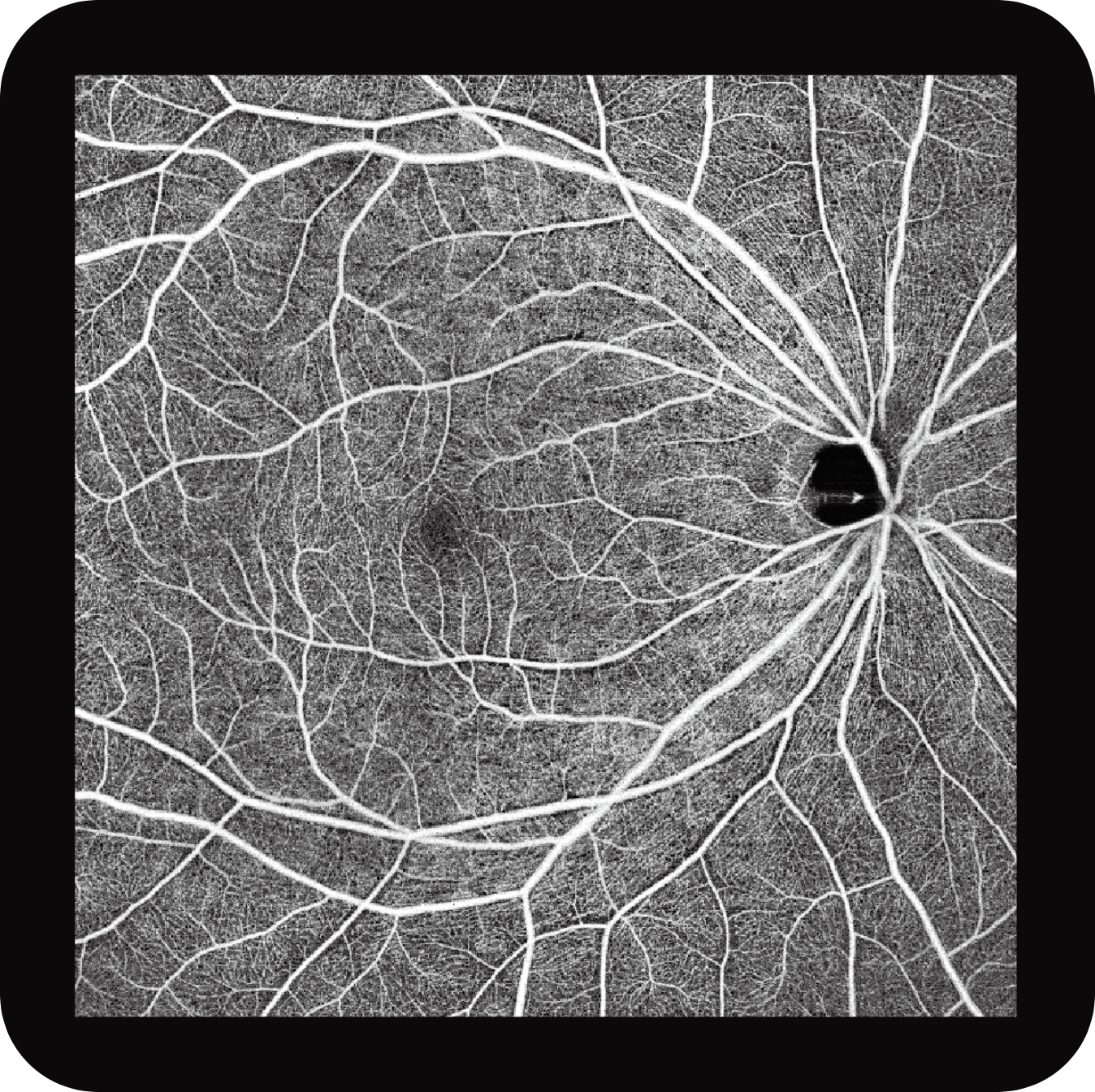 OCTA até 220° em mosaico, para análise detalhada da vascularização.